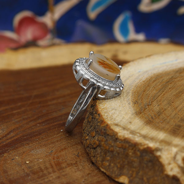 انگشتر عقیق شجر نقره زنانه طرح نگین