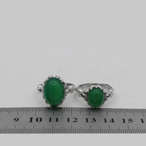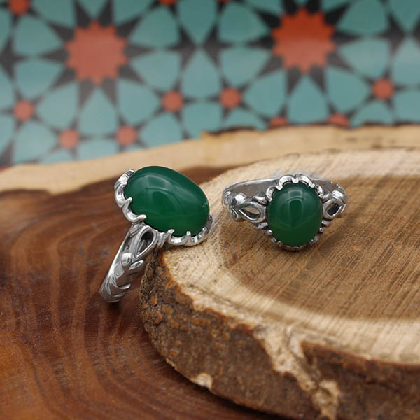 انگشتر ست عقیق سبز نقره مردانه و زنانه طرح نیکی