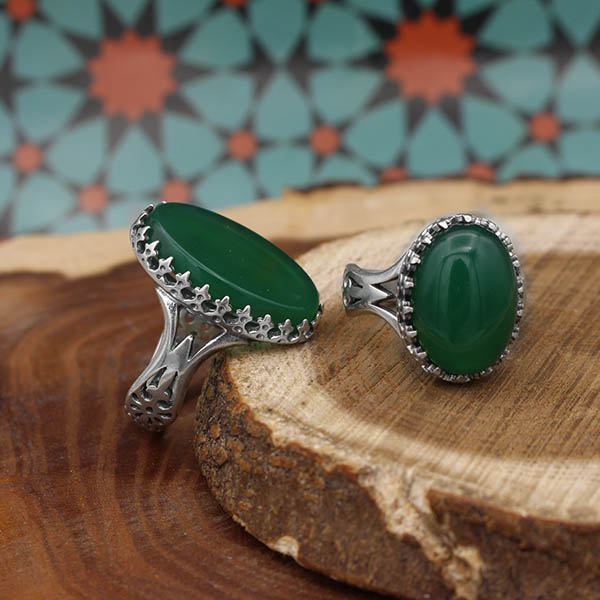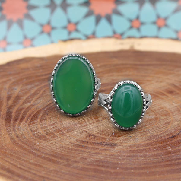 انگشتر ست عقیق سبز نقره مردانه و زنانه طرح روح الامین