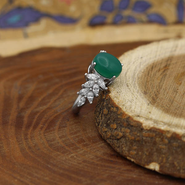 انگشتر عقیق سبز نقره زنانه طرح پرستو