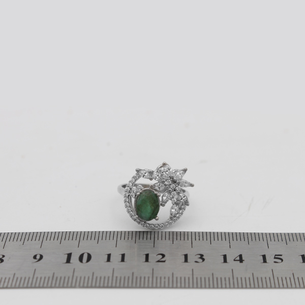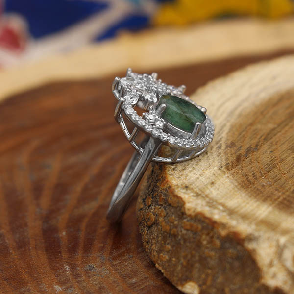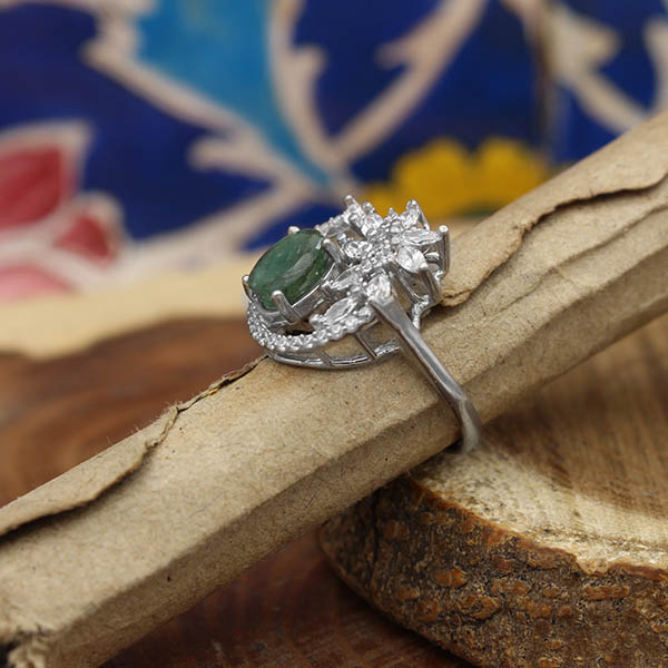 انگشتر زمرد الماس تراش نقره زنانه طرح پردیس