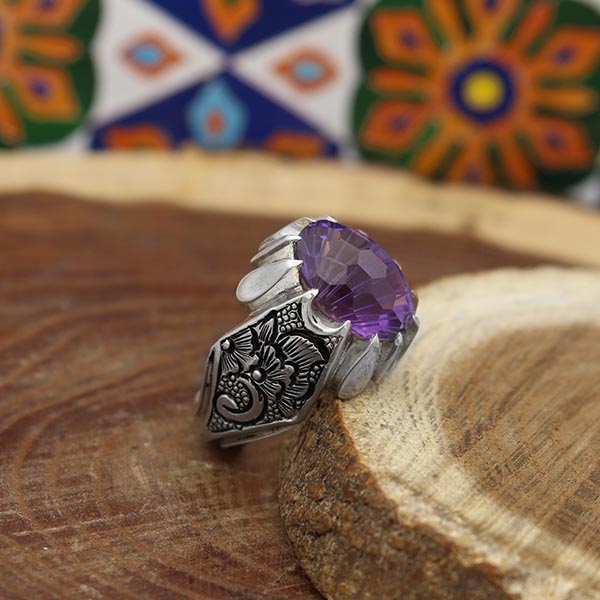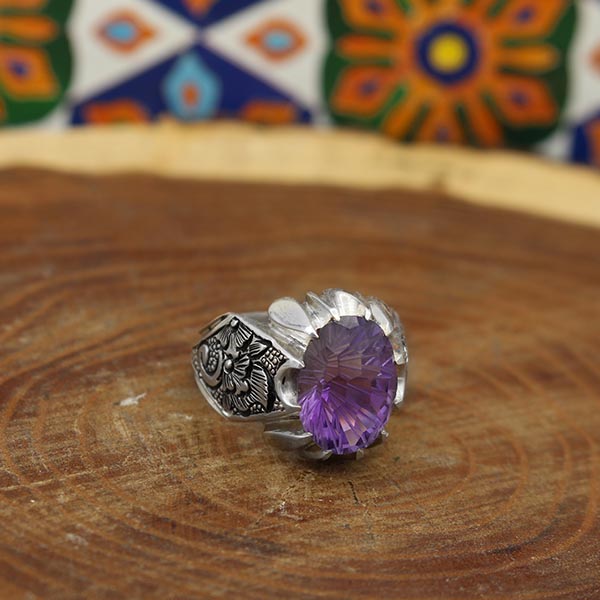 انگشتر آمیتیست نقره مردانه دست ساز طرح پارسا