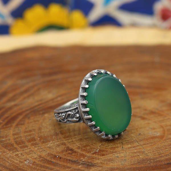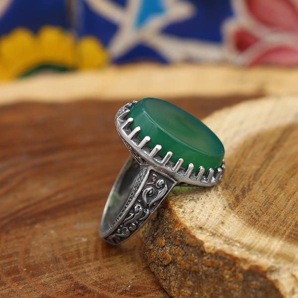 انگشتر عقیق سبز نقره مردانه طرح پارسا