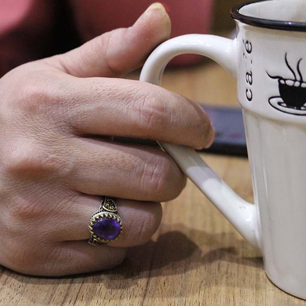 ۴- در مجموع این انگشتر بنفش یک محافظ و پاکساز روانی است. همچنین اگر شخصی بیمار باشد قرار دادن قطعه ای از این گوهر در کنار خود می تواند محیط روانی بدن فرد و سطوح انرژی را در سطحی از تعادل و بهزیستی نگه دارد.