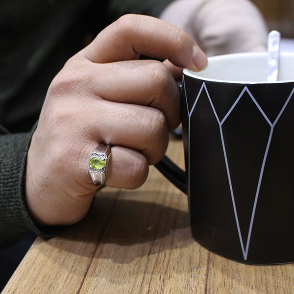 انگشتر زبرجد الماس تراش نقره مردانه دست ساز طرح آبان