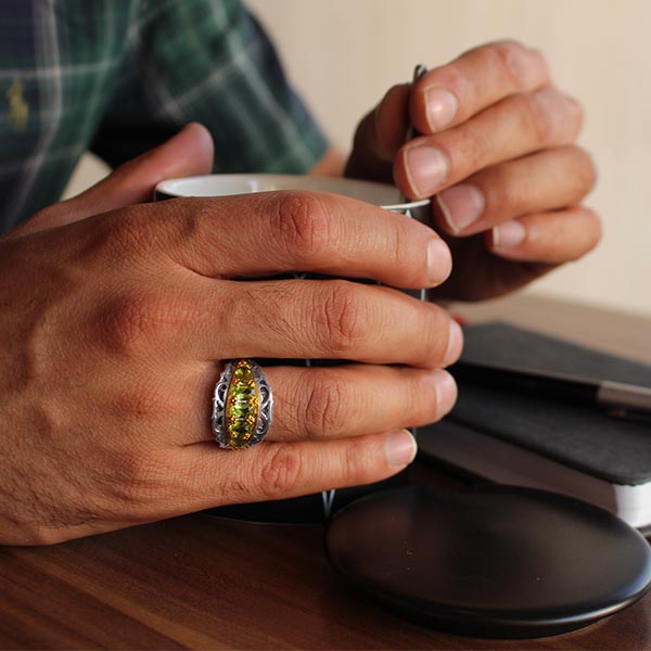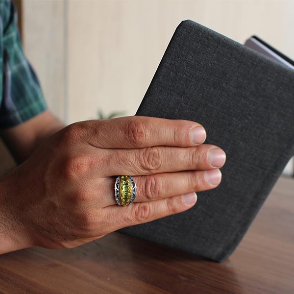 انگشتر زبرجد الماس تراش نقره مردانه طرح ادیب