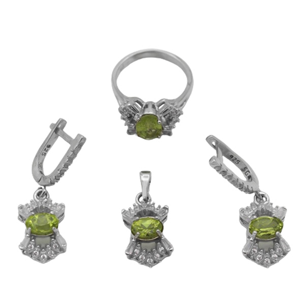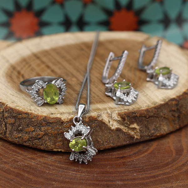 نیم ست زبرجد الماس تراش نقره زنانه طرح دینا