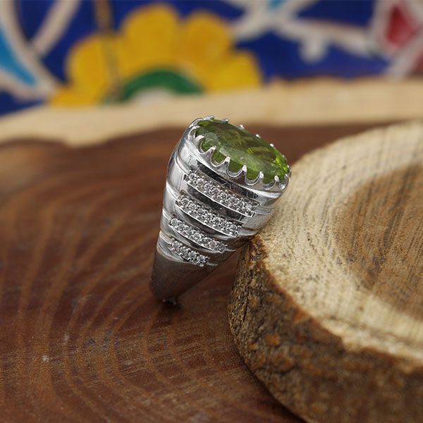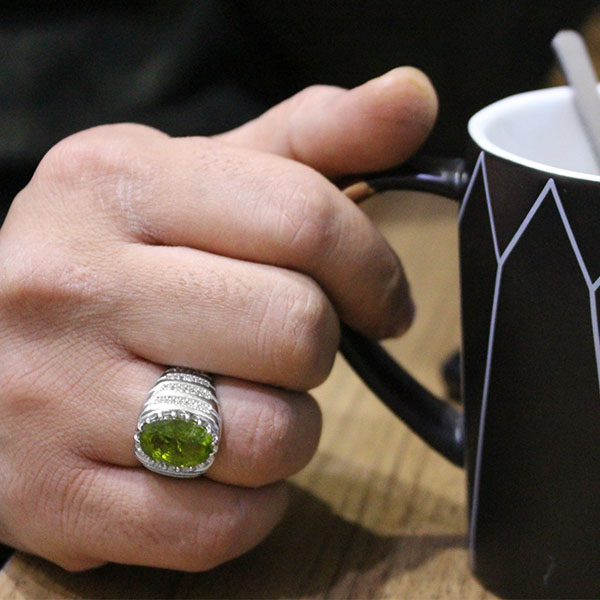 انگشتر زبرجد الماس تراش نقره مردانه طرح فرهاد