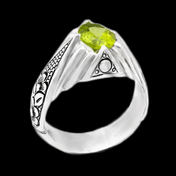 انگشتر زبرجد طرح فاتح از نقره ۹۲۵ عیار ساخته شده است. رکاب این محصول دست ساز بوده که در آن میتوان هنر دست هنرمندان مجرب این حرفه را دید. بر روی رکاب این کار از طرح های قلم زنی استفاده شده است که کیفیت و ظرافت قلم زنی بسیار مناسب ارزیابی می شود. نگین استفاده شده در این انگشتر زبرجد اصل و معدنی بوده که به جز زیبایی ظاهری دارای خواص بیشماری نبز میباشد و با توجه به رنگ خاص و رگه موجود در آن اصالت و معدنی بودنش ثابت میشود. جنس این انگشتر از نقره با عیار بالا است که قابلیت سایز شدن برای هر انگشتی را دارد.