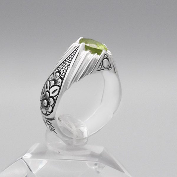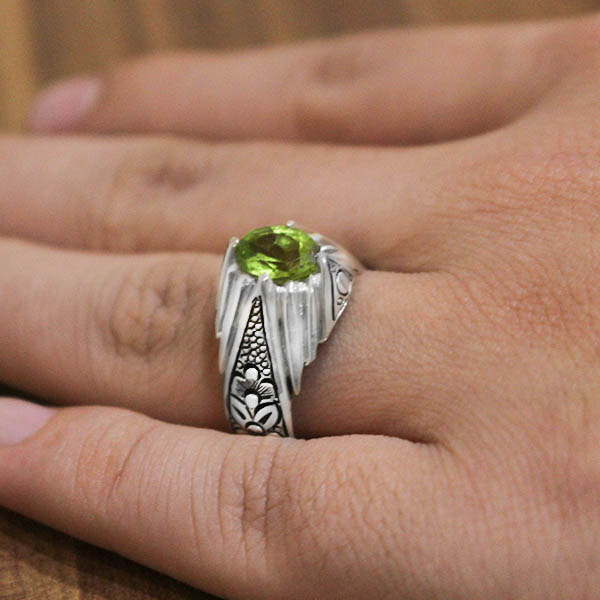 انگشتر زبرجد الماس تراش نقره مردانه دست ساز طرح فاخر فاتح