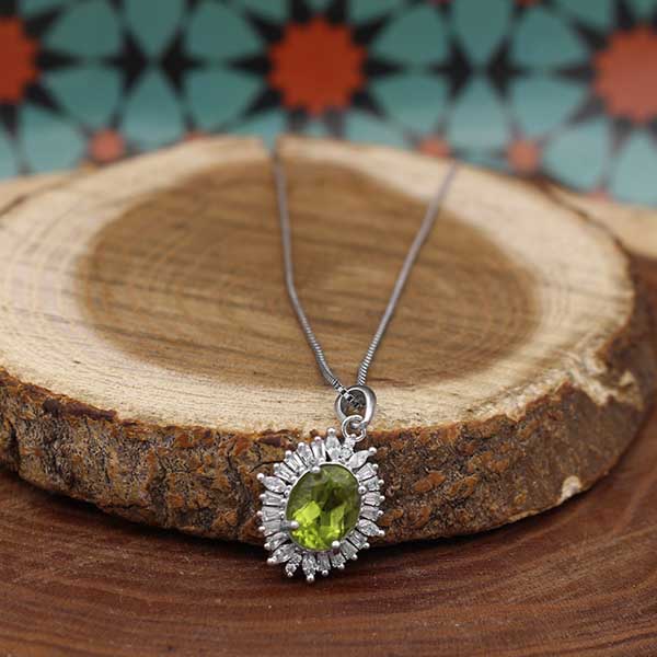 گردنبند زبرجد الماس تراش نقره زنانه طرح هستی