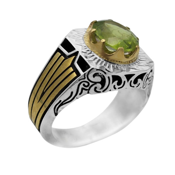 انگشتر زبرجد الماس تراش نقره مردانه طرح کیاشا