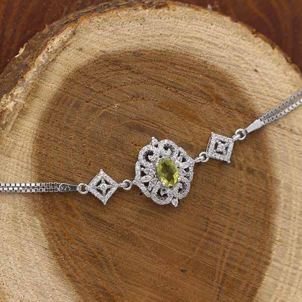 دستبند زبرجد الماس تراش نقره زنانه طرح کوکب