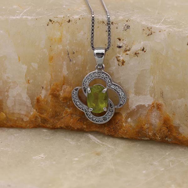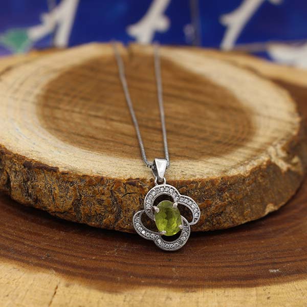 گردنبند زبرجد الماس تراش نقره زنانه طرح لی لی