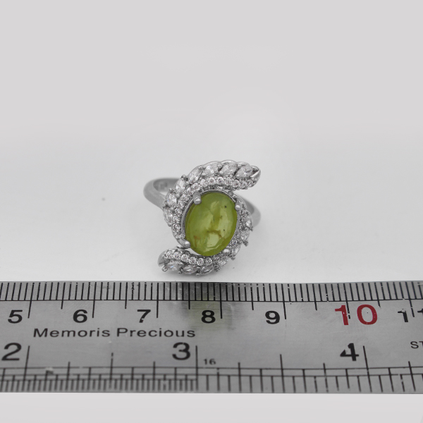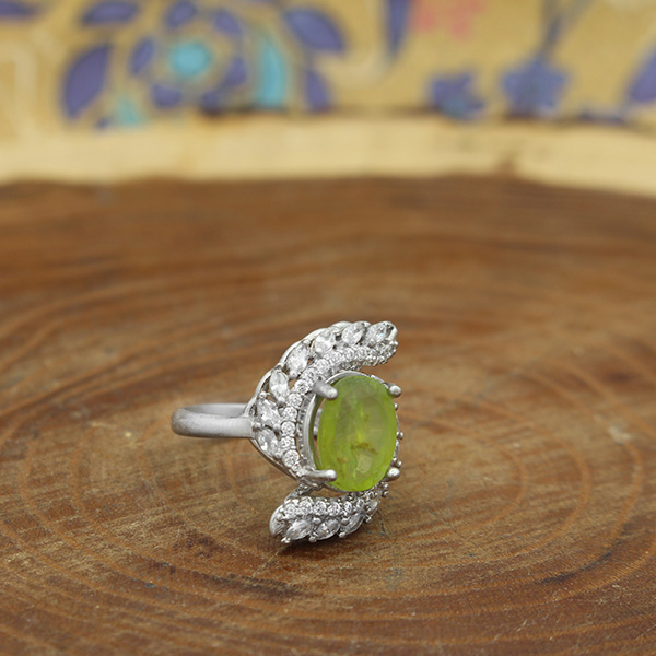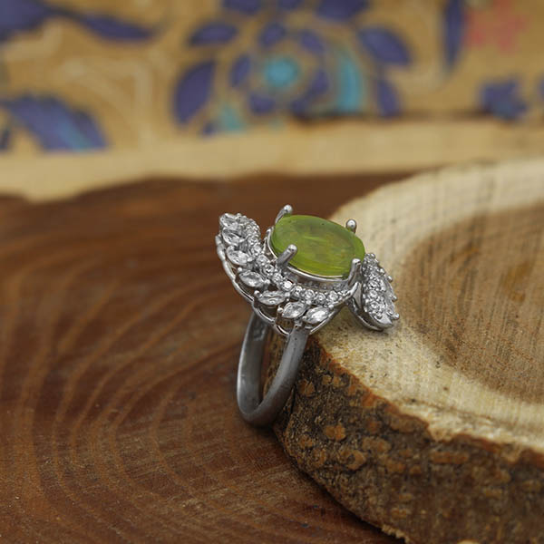 انگشتر زبرجد الماس تراش نقره زنانه طرح ماه بانو