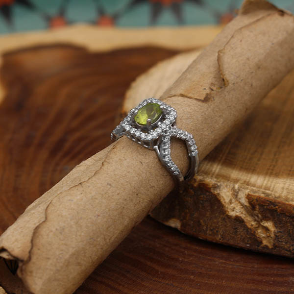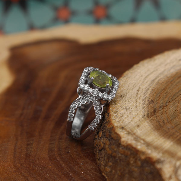 انگشتر زبرجد الماس تراش نقره زنانه طرح مژده