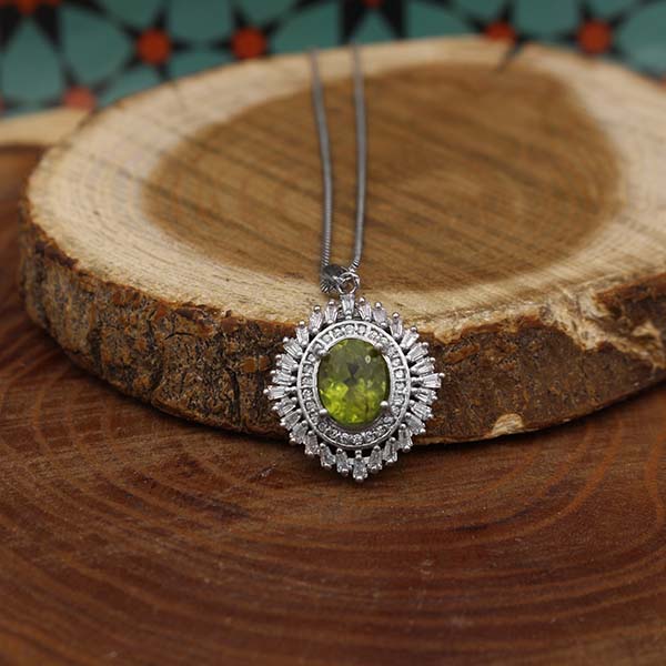 گردنبند زبرجد الماس تراش نقره زنانه طرح نفیسه