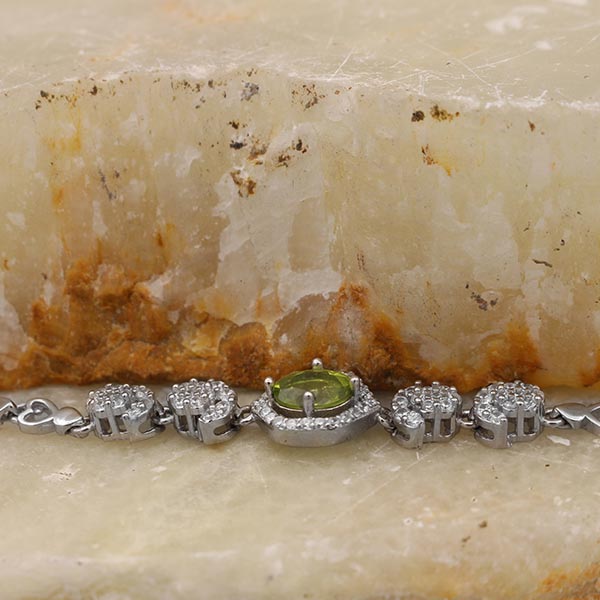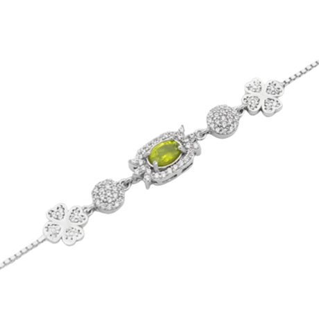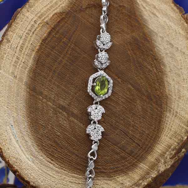 دستبند زبرجد الماس تراش نقره زنانه طرح نازگل