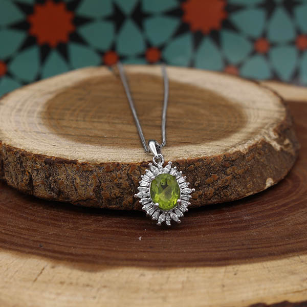گردنبند زبرجد الماس تراش نقره زنانه طرح نیلوفر