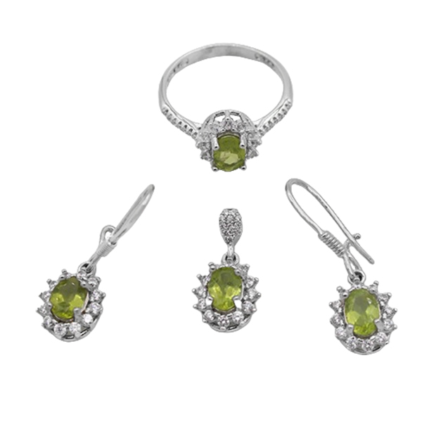 نیم ست زبرجد الماس تراش نقره زنانه طرح راوک