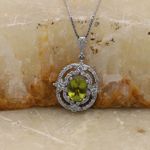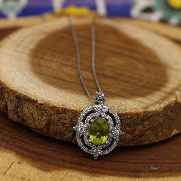 گردنبند زبرجد الماس تراش نقره زنانه طرح رز
