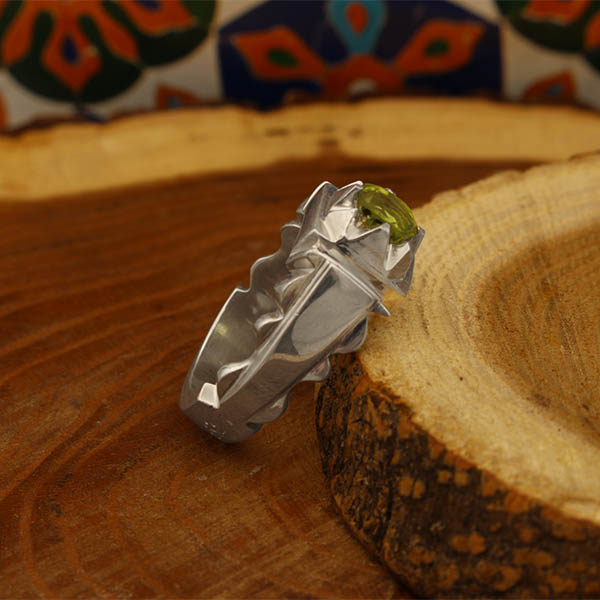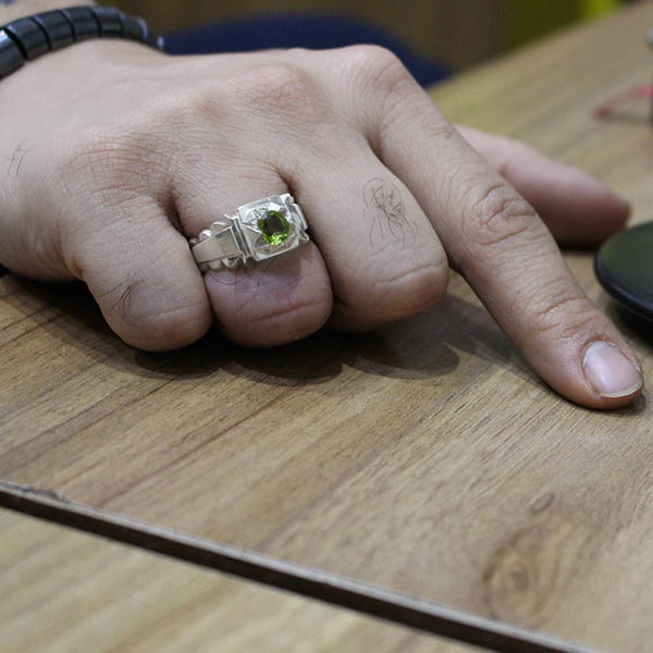انگشتر زبرجد الماس تراش نقره مردانه دست ساز طرح سهراب