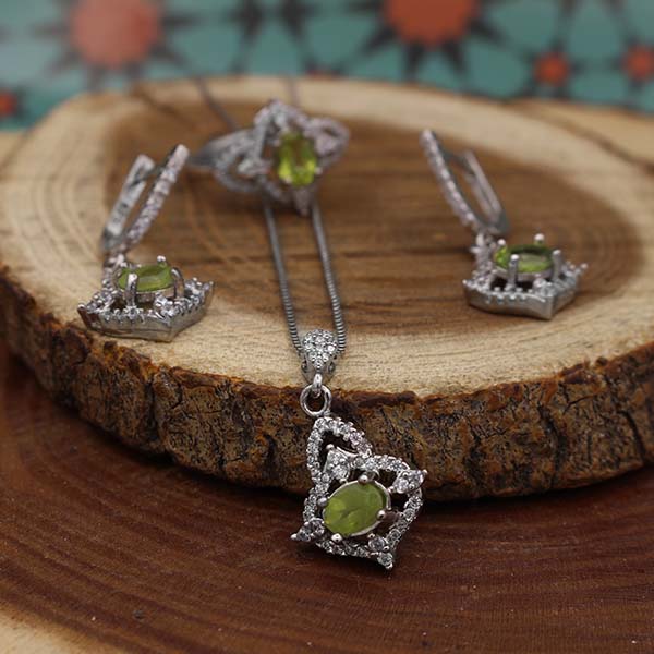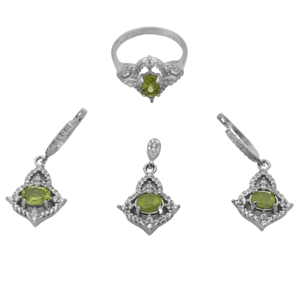 نیم ست زبرجد الماس تراش نقره زنانه طرح سولماز