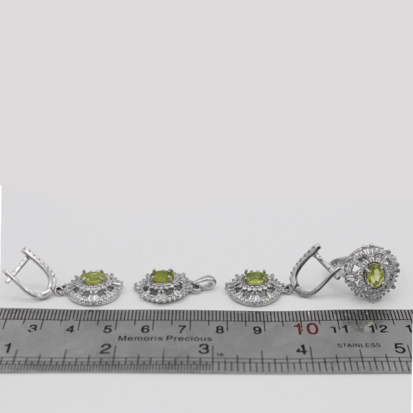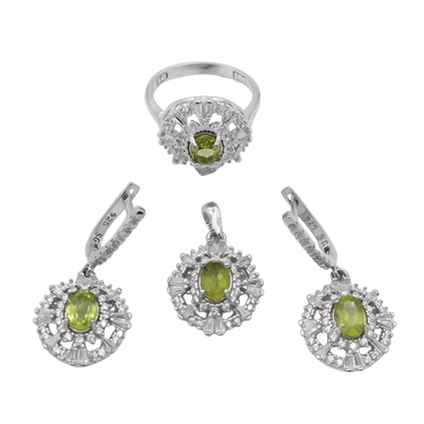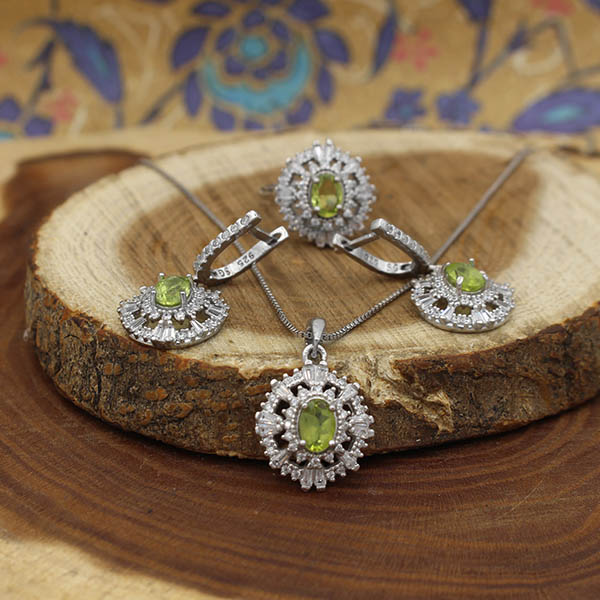 نیم ست زبرجد الماس تراش نقره زنانه طرح سوسن