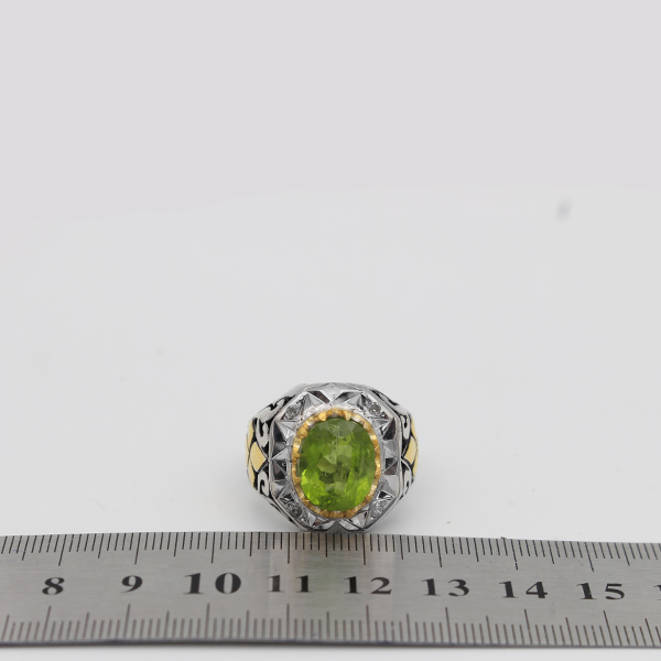 انگشتر زبرجد الماس تراش نقره مردانه دست ساز طرح طاهر + 4 قطعه برلیان