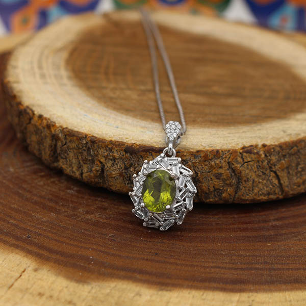 گردنبند زبرجد الماس تراش نقره زنانه طرح زرمه