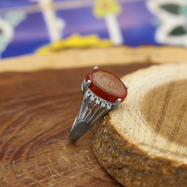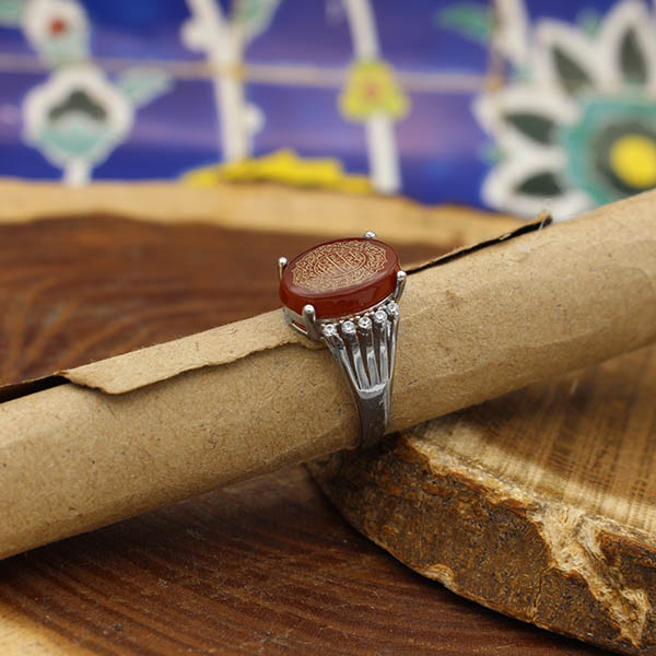 انگشتر عقیق سرخ نقره زنانه طرح افرا + آیت الکرسی