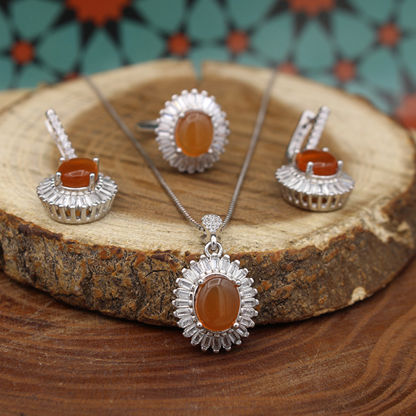 نیم ست عقیق سرخ یمنی نقره زنانه طرح آنیسا