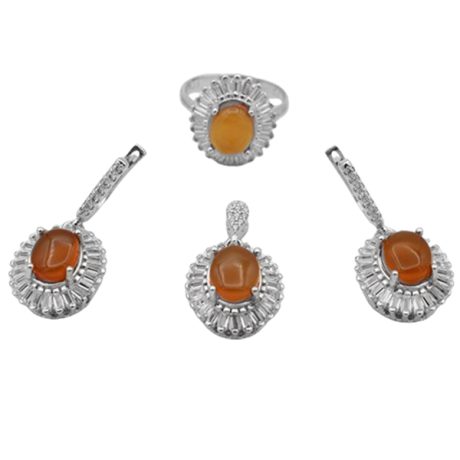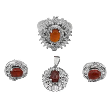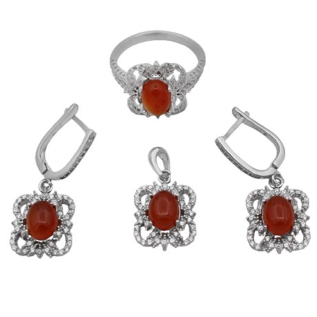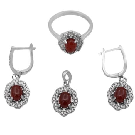 نیم ست عقیق سرخ یمنی نقره زنانه طرح بهنوش