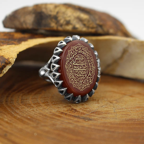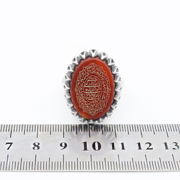 انگشتر عقیق سرخ نقره مردانه طرح اسماعیل + حرز امام جواد (ع) + آیت الکرسی