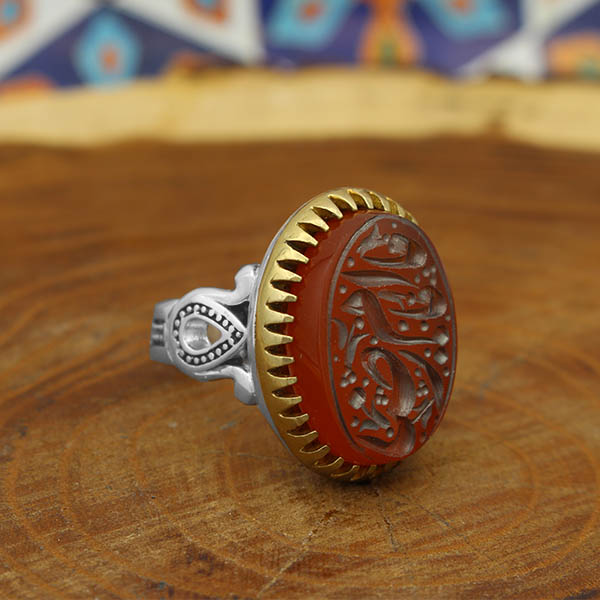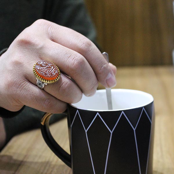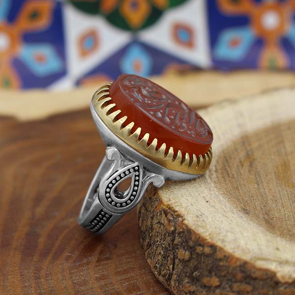 انگشتر عقیق سرخ نقره مردانه طرح یا امام رضا (ع)