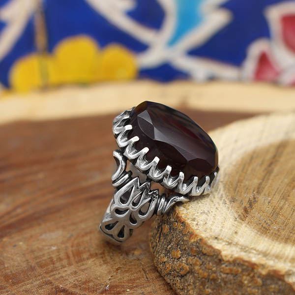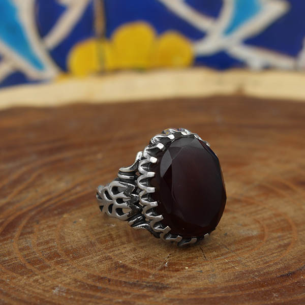 انگشتر عقیق سرخ نقره مردانه طرح حاکم