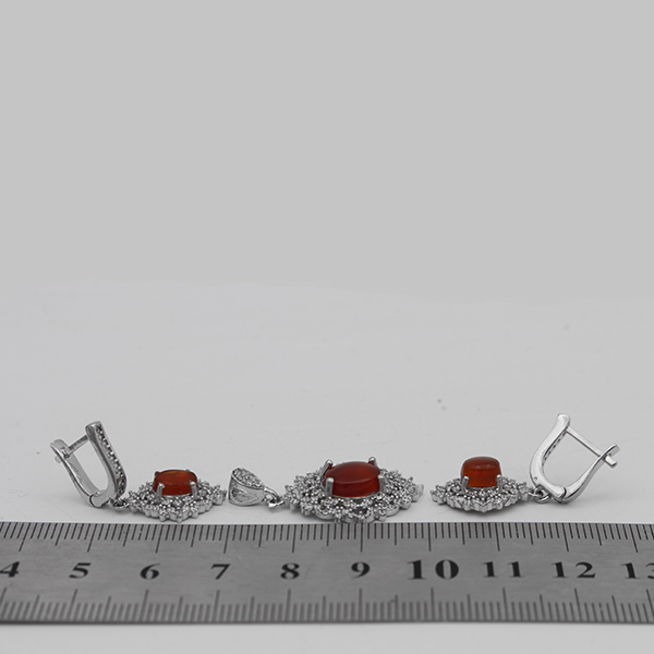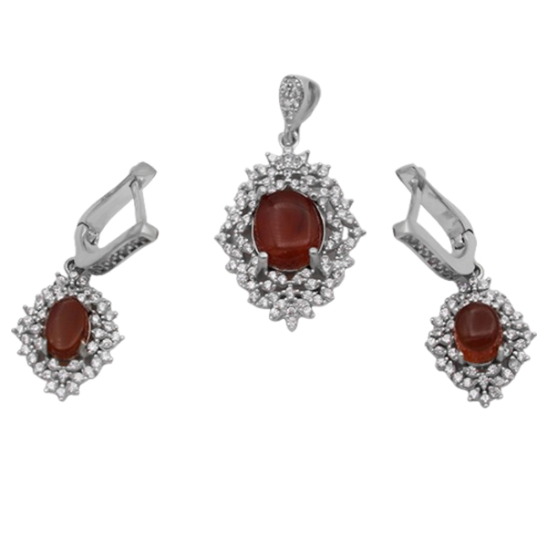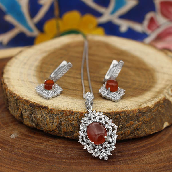 نیم ست عقیق سرخ یمنی نقره زنانه طرح حلیمه
