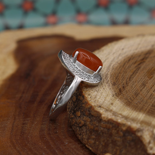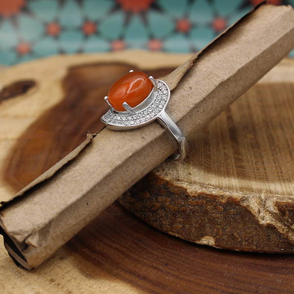 انگشتر عقیق سرخ یمنی نقره زنانه طرح مهتا