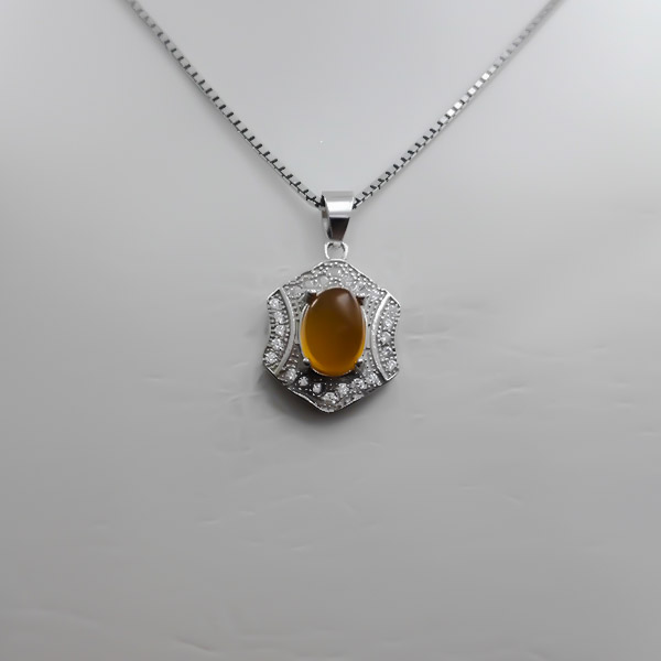 گردنبند عقیق سرخ یمنی طرح نرجس از نقره ۹۲۵ عیار ساخته شده و طرح خاص و منحصر به فرد رکاب نقش زیادی در افزایش جذابیت محصول دارد. این گردنبند دارای ابکاری رادیوم بوده که در برابر خراش،آسیب،ضرب خوردگی،مواد شیمیایی و.. مقاوم است و مانع تغییر رنگ و کدر شدن محصول میشود. استفاده از نگین های ریز اتمی و چینش آنها به صورت ظریف و منظم به جذابیت و درخشش گردنبند می افزاید.جنس نگین سنگ عقیق یمنی اصل و معدنی بوده که علاوه بر رنگ منحصر به فرد و جذاب دارای خواص معنوی بسیاری است