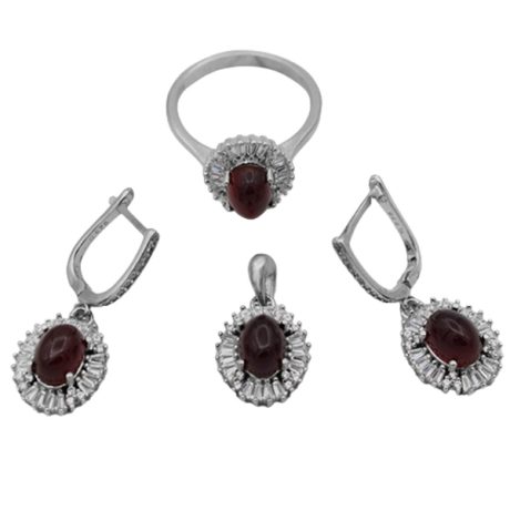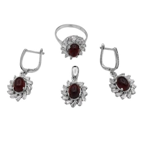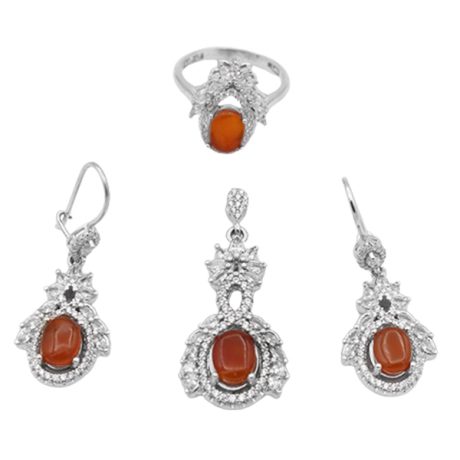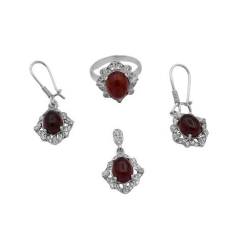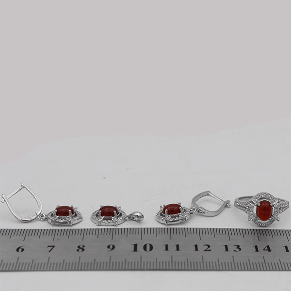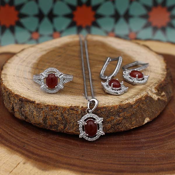 نیم ست عقیق سرخ نقره زنانه طرح نسیم