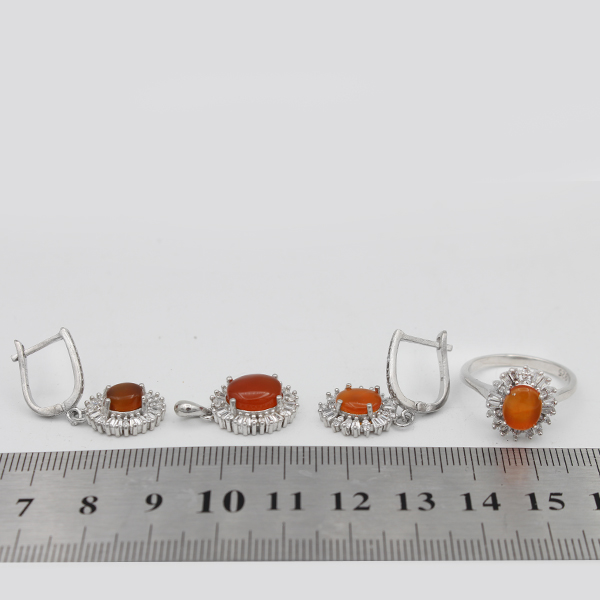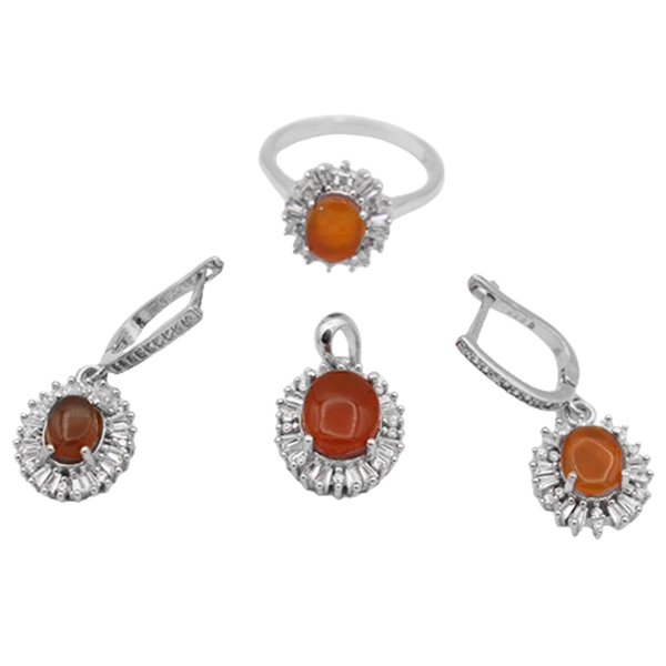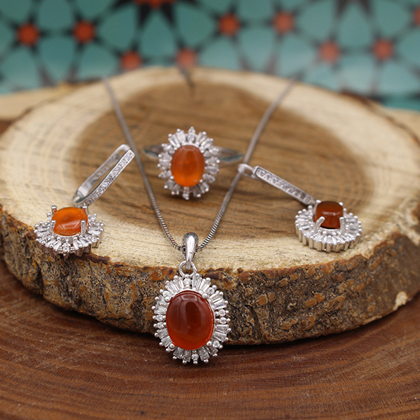 نیم ست عقیق سرخ یمنی نقره زنانه طرح ریحانه
