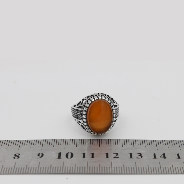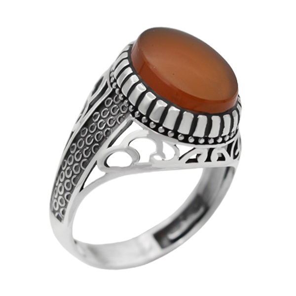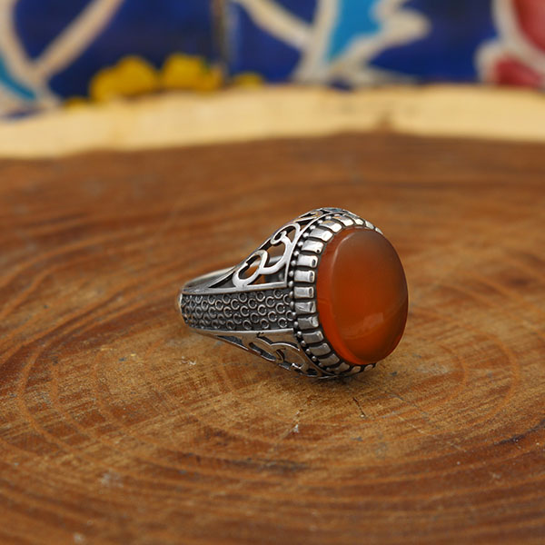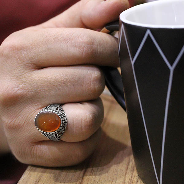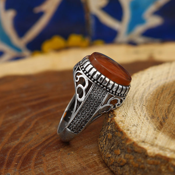 انگشتر عقیق سرخ یمنی نقره مردانه طرح سپند