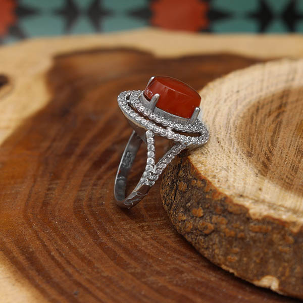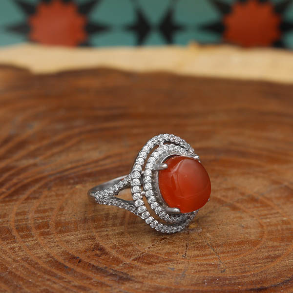 انگشتر عقیق سرخ یمنی نقره زنانه طرح سپیده