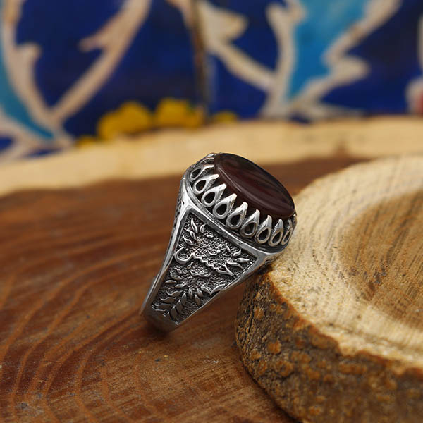 انگشتر عقیق سرخ نقره مردانه طرح سهراب