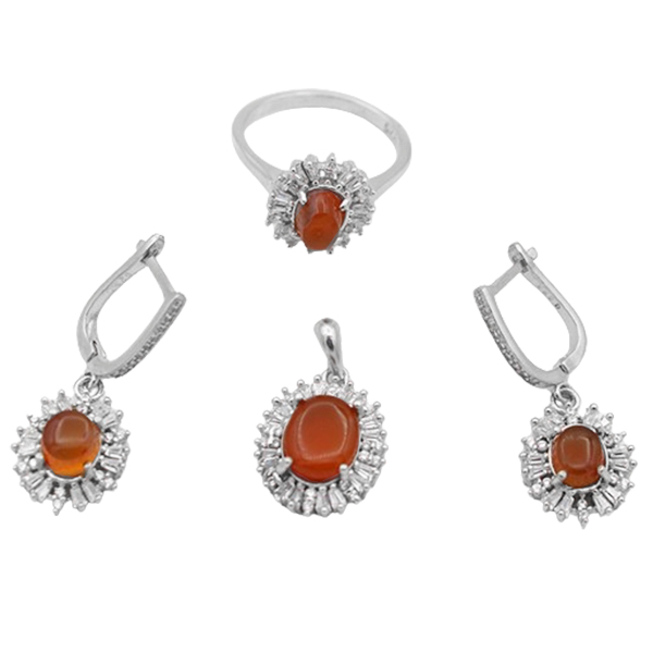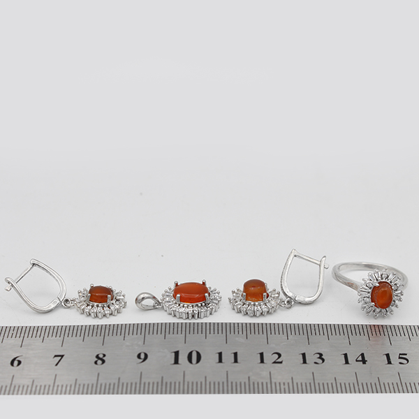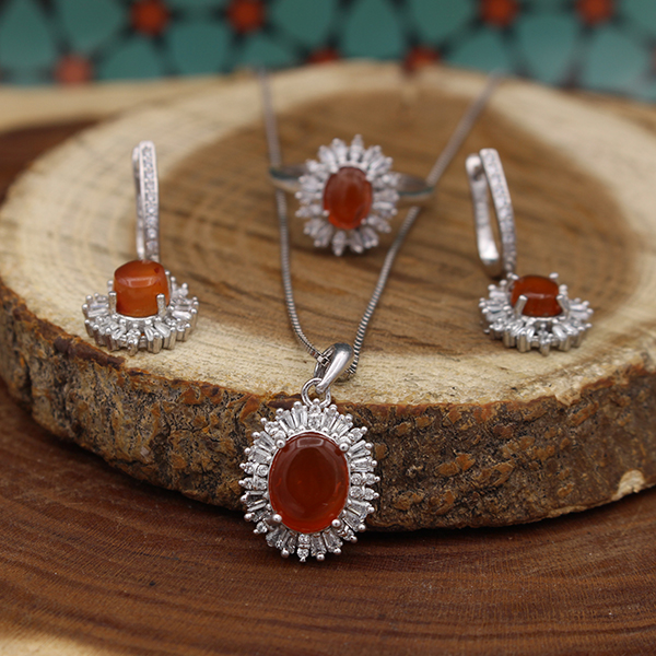 نیم ست عقیق سرخ یمنی نقره زنانه طرح زری