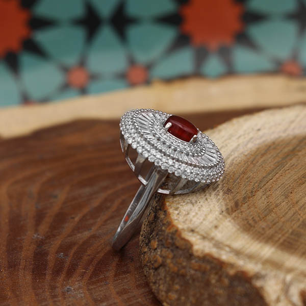 انگشتر عقیق سرخ نقره زنانه طرح زهره