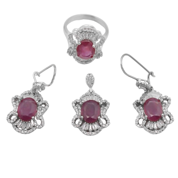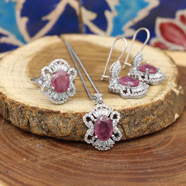 نیم ست یاقوت سرخ الماس تراش نقره زنانه طرح آرمیتا