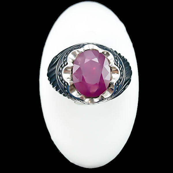 انگشتر نقره مردانه طرح فاخر آریا با سنگ یاقوت سرخ الماس تراش