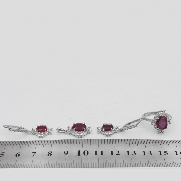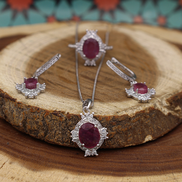 نیم ست یاقوت سرخ الماس تراش نقره زنانه طرح السا