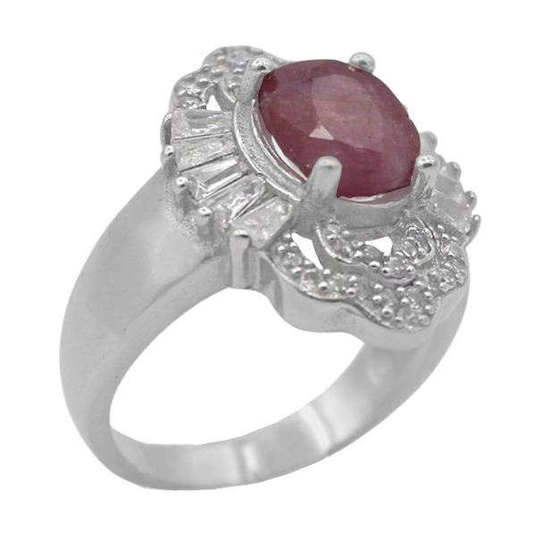 انگشتر یاقوت سرخ الماس تراش نقره زنانه طرح انسیه ۱